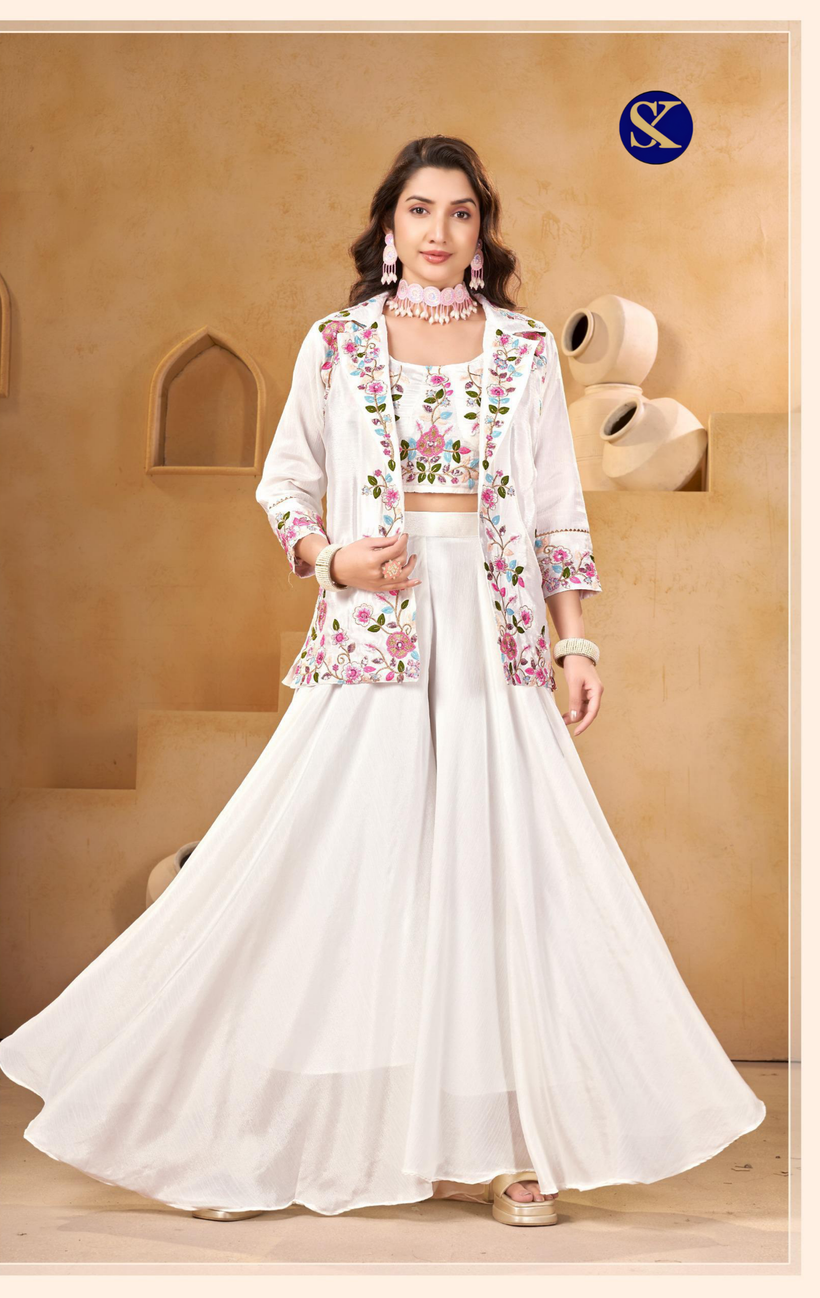 CHINON SILK INDO WESTERN WITH SHARARA CHOLI